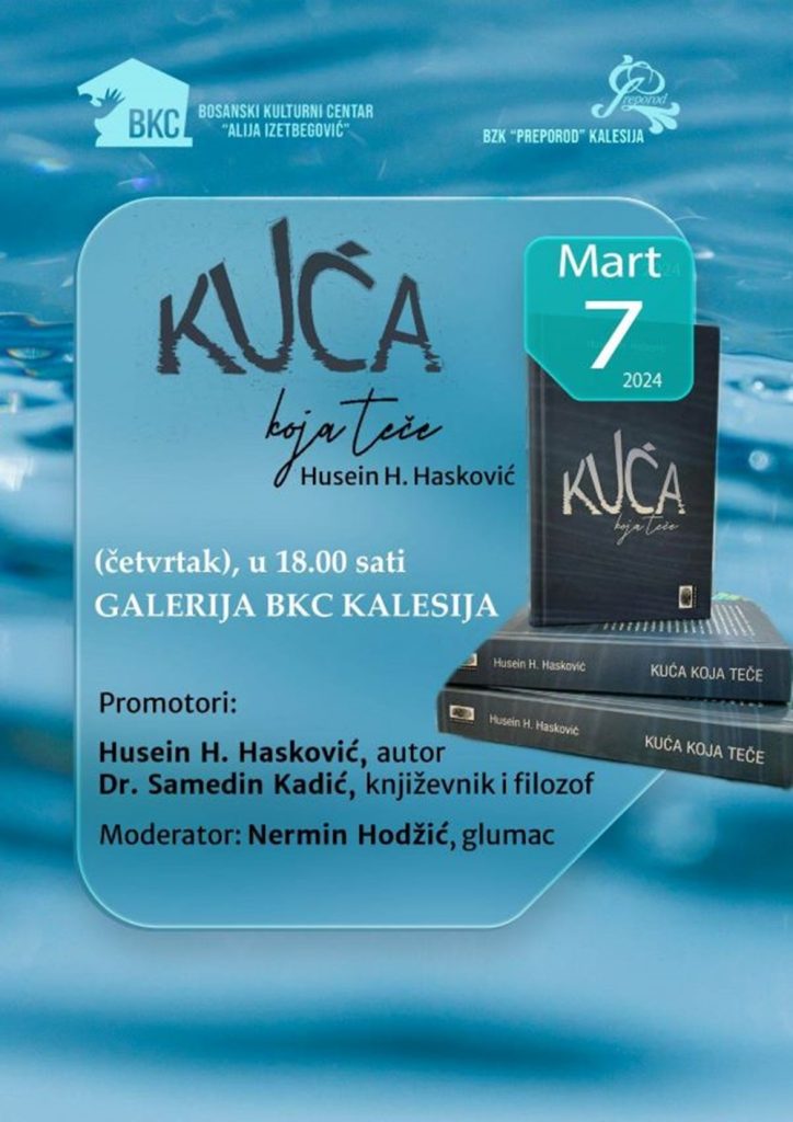 U četvrtak, 7. marta 2024. godine, sa početkom u 18,00 sati, u galerijskom prostoru kalesijskog BKC-a, bit će održana promocija knjige sabrane poezije Huseina Haskovića „Kuća koja teče“.