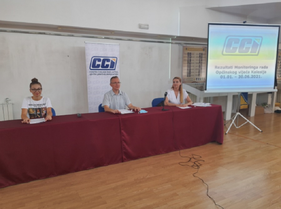 Centri civilnih inicijativa su na današnjoj press konferenciji predstavili rezultate monitoringa rada Općinskog vijeća Općine Kalesija, u periodu 01.01. – 30.06.2021. godine. Općinsko Vijeće je konstituisano u skladu sa rokovima koje propisuje Poslovnik Općinskog vijeća, u roku od 30 dana nakon potvrđenih izbornih rezultata. Vijećnici Općinskog vijeća Kalesija su na Konstituirajućoj sjednici položili svečanu izjavu i potpisali tekst iste. Međutim, predsjedavajući i zamjenik predsjedavajućeg Općinskog vijeća su izabrani na nastavku konstituirajuće sjednice koja je održana 18.01.2021. godine.