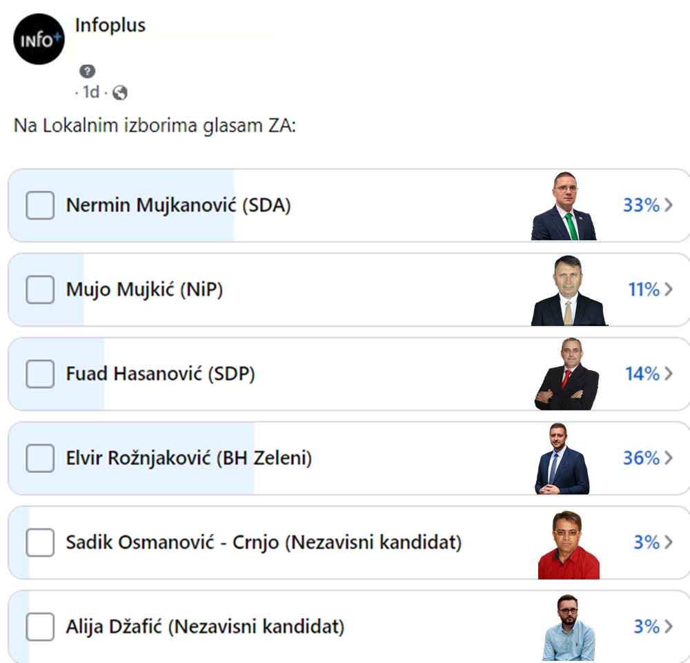 U protekla 24 sata na facebook stranici Infoplus posjetioci su imali priliku da svojim glasom izaberu novog načelnika Kalesije.