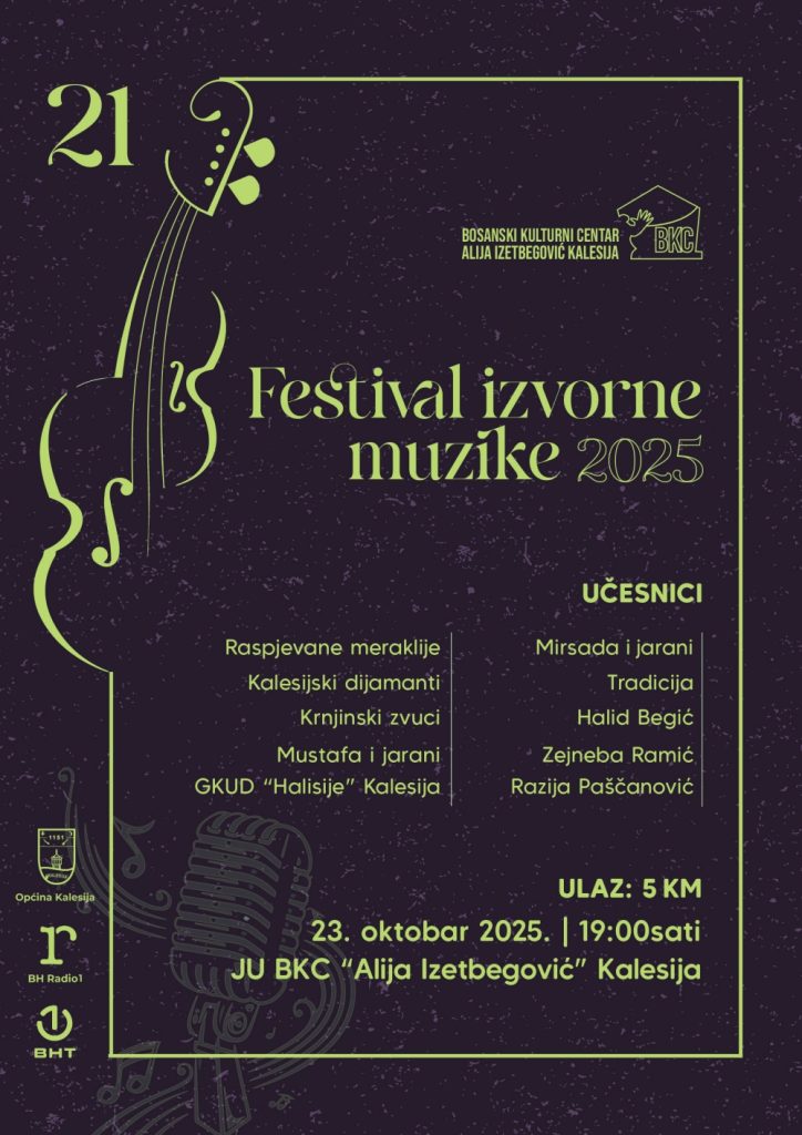 Bosanski kulturni centar „Alija Izetbegović“ Kalesija najavljuje 21. Festival izvorne muzike – „Kalesija 2025“.