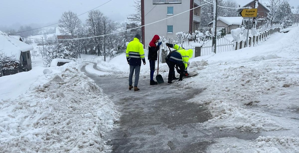 Nekoliko mještana povratničkog naselja Hajvazi, na području opštine Osmaci nisu čekali da im nadležni pomognu u čišćenju puta, već su uzeli lopate i sami sredili ulaz i izlaz iz naselja i tako pomogli vozačima da se lakše uključe na magistralni put.