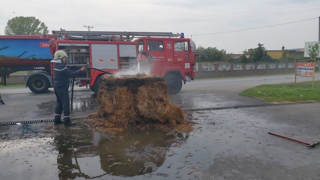 Kalesijski vatrogasci intervenisali su jučer na magistralnom putu u naselju Dubnica gdje je došlo do zapaljenja bala sijena na traktoru u pokretu.