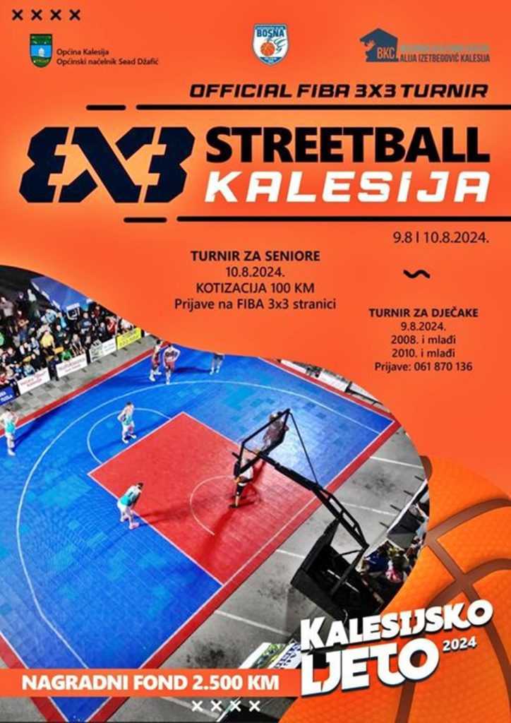 U okviru manifestacije “Kalesijsko ljeto” i ove godine KK “Bosna” Kalesija i BKC “Alija Izetbegović” Kalesija organiziraju turnir u uličnoj košarci 3×3. Prošlogodišnji turnir oduševio je sve ljubitelje sporta u Kalesiji a ove godine želimo biti još bolji.
