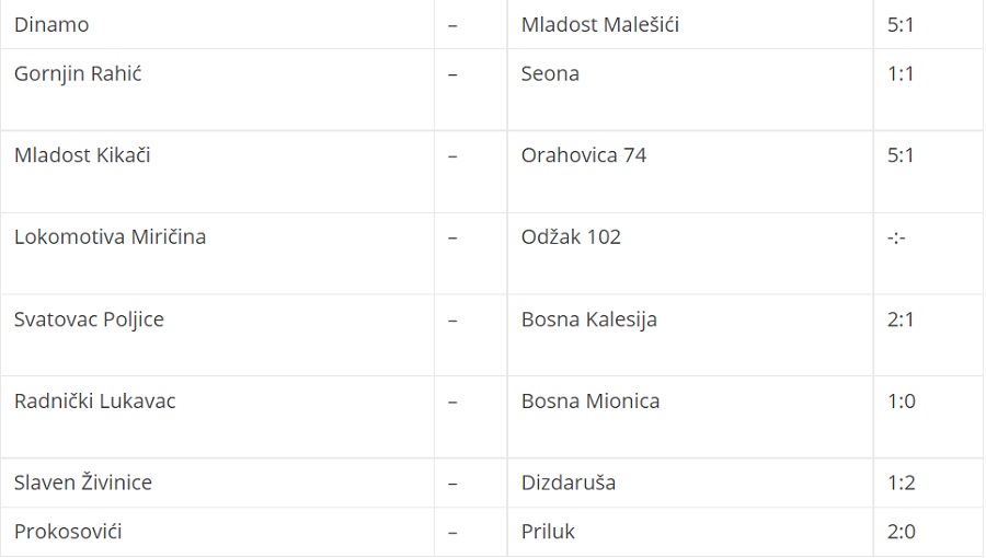 Bosna iz Kalesije je kao gost poražena od Svatovca iz Poljica sa 2:1. Mladost će u narednom kolu gostovati kod Seone, dok će Bosna na Gradskom stadionu u Kalesiji ugostiti Radničkog iz Lukavca.