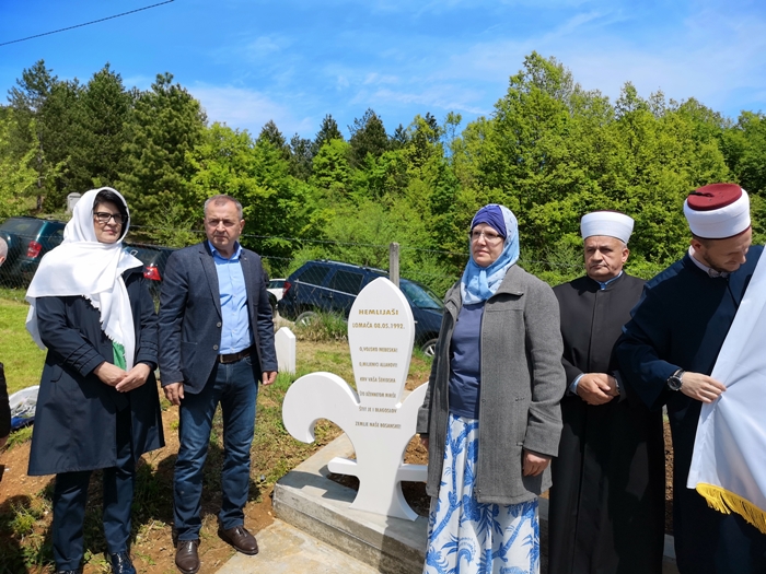 U ime općinskog načelnika Seada Džafića danas je njegov savjetnik Fikret Suljkanović zajedno sa predstavnicom porodica ubijenih Mihnetom otkrio spomen obilježje za osam ubijenih, a zatim spaljenih Bošnjaka iz kalesijskog naselja Hemlijaši.