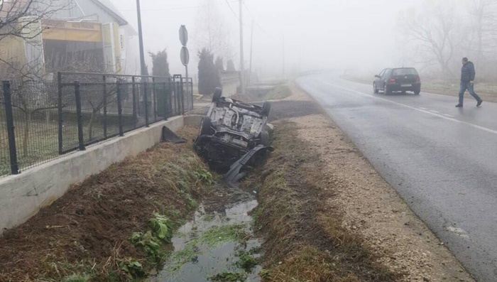 Za sada nepoznati vozač je krećući se iz pravca Zvornika nad vozilom “Peugeot 206” izgubio kontrolu te je završio u kanalu na krovu.