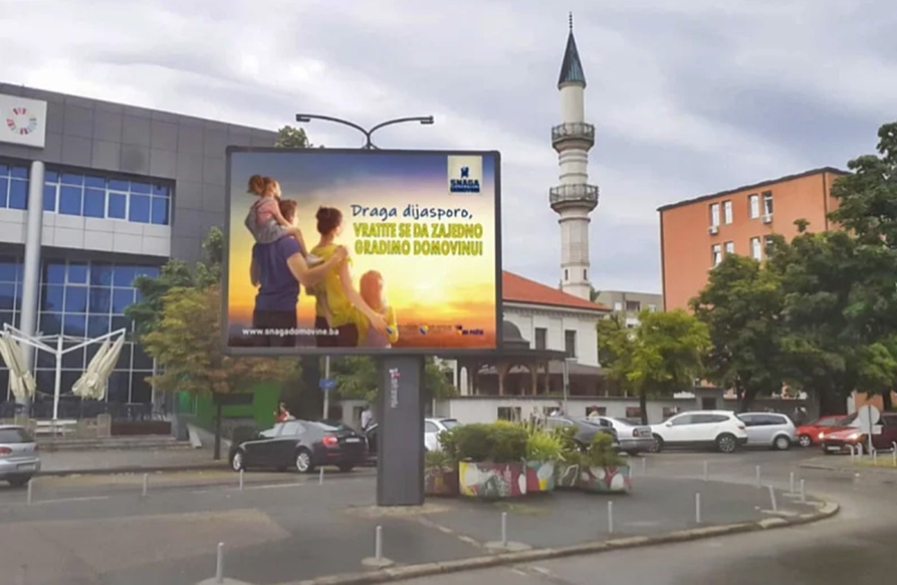 Bilbordi sa porukom “Draga dijasporo, vratite se da zajedno gradimo domovinu” su istaknuti na graničnim prijelazima, gradovima i na frekventnim putnim komunikacijama. Između ostalih: Bijeljina, Bihać, Cazin, Bosanska Gradiška, Banja Luka, Brčko, Orašje, Doboj itd.