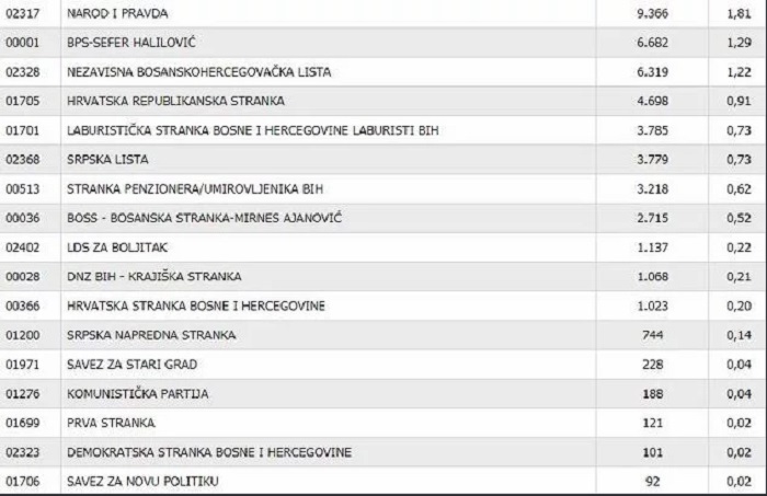 Demokratska fronta je osvojila osam posto glasova u Federaciji BiH, a iza nje je Stranka za bolju budućnost sa šest posto. Novoformirani Pokret demokratske ackije je nadomak praga od pet posto za ulazak u Zastupnički dom Parlamenta FBiH.