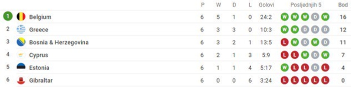 Grčka je nakon utakmice u Zenici ostala na drugom mjestu grupe H kvalifikacija za Mundijal, dok je Bosna i Hercegovina trećeplasirana s bodom manje od večerašnjeg protivnika.