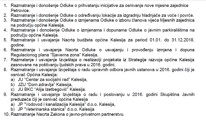 Podsjećanja radi, nastavak 7.redovne sjednice je prošao bez prisustva vijećnika iz Stranke demokratske akcije, Bosanskohercegovačke patriotske stranke, Građanske demokratske stranke i samostalne vijećnice Nejre Mujanović koju su smatrali da ista nije sazvana u skladu sa Poslovnikom o radu OV Kalesija.