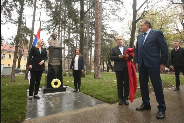 Otkrivanju biste prisustvovali su član Predsjedništva BiH Milorad Dodik, predsjednica RS-a Željka Cvijanović, ali i osuđeni ratni zločinac Momčilo Krajišnik, koji je prisustvovao u ime “Asocijacije stvaralaca RS-a”, koja je i inicirala podizanje spomenika.
