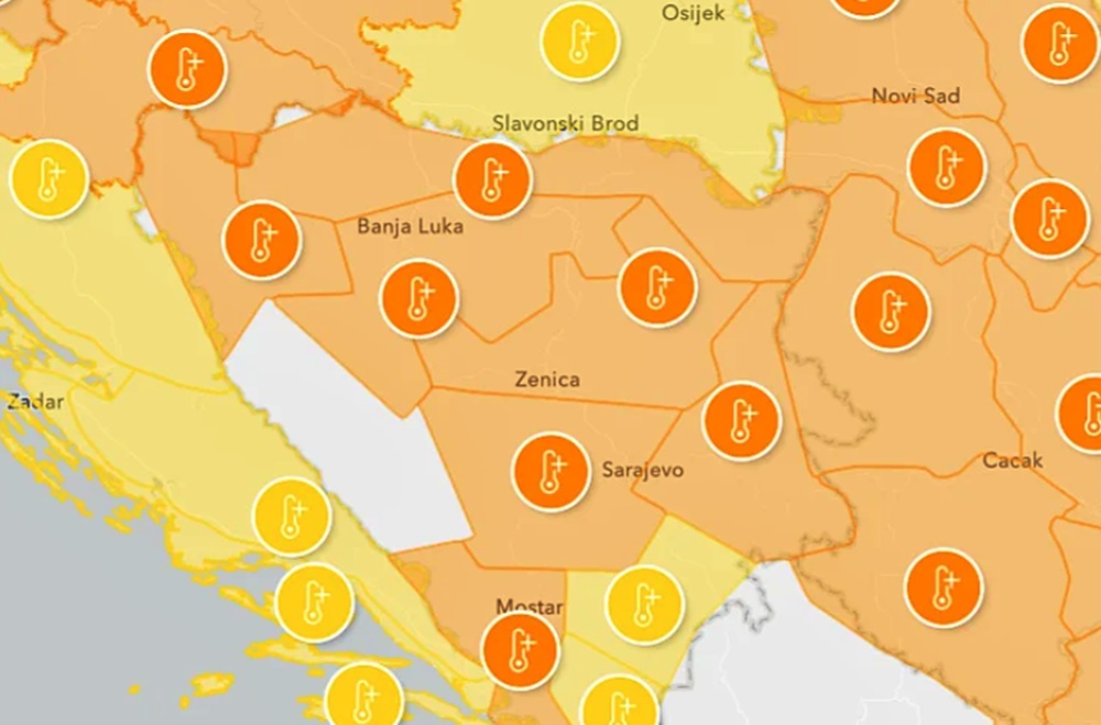 Federalni hidrometeorološki zavod izdao je narandžasto upozorenje zbog visokih dnevnih temperatura za teritoriju cijele Bosne i Hercegovine.